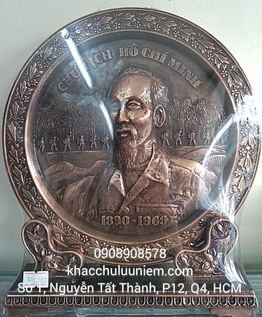 - Chân dung Bác Hồ nổi được phác họa sắc nét và mạ màu đồng đỏ, sang trọng và uy nghiêm.