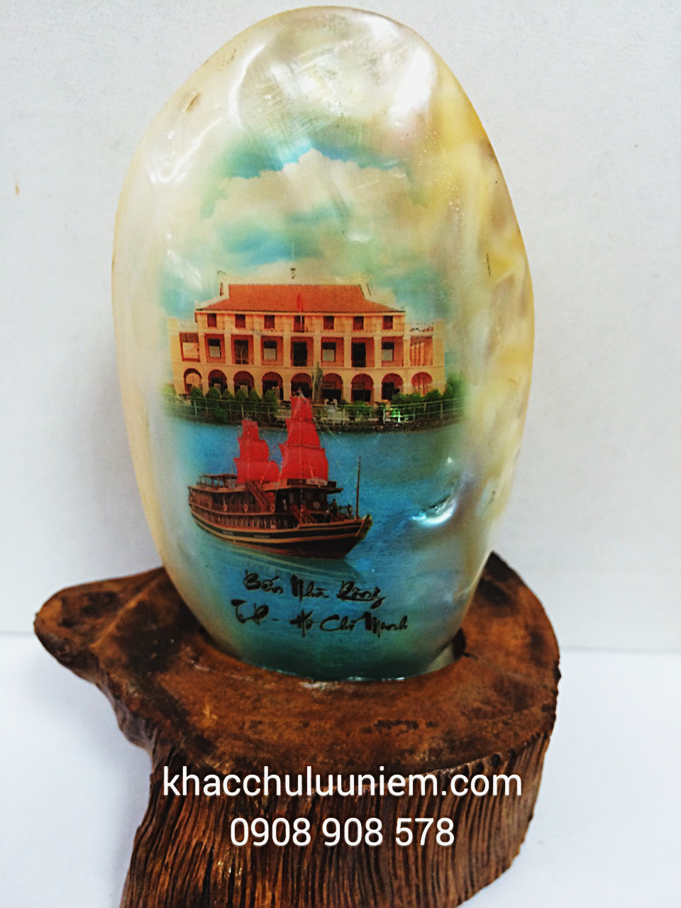 In hình Bến Nhà Rồng trên vỏ trai ốc