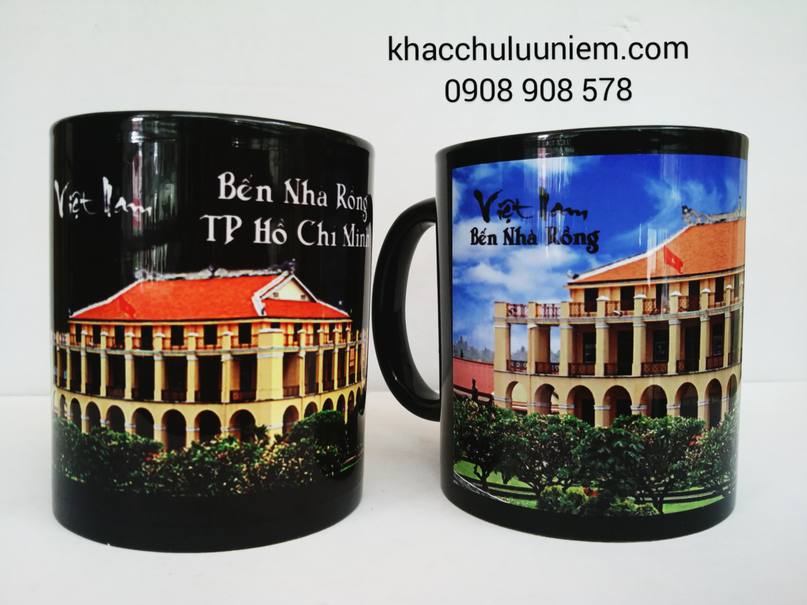 Ly sứ in hình Bến Nhà Rồng.