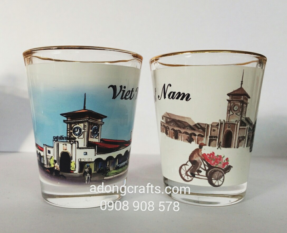 LY THỦY TINH IN HÌNH CHỢ BẾN THÀNH, NHÀ THỜ ĐỨC BÀ, BẢN ĐỒ VIỆT NAM.