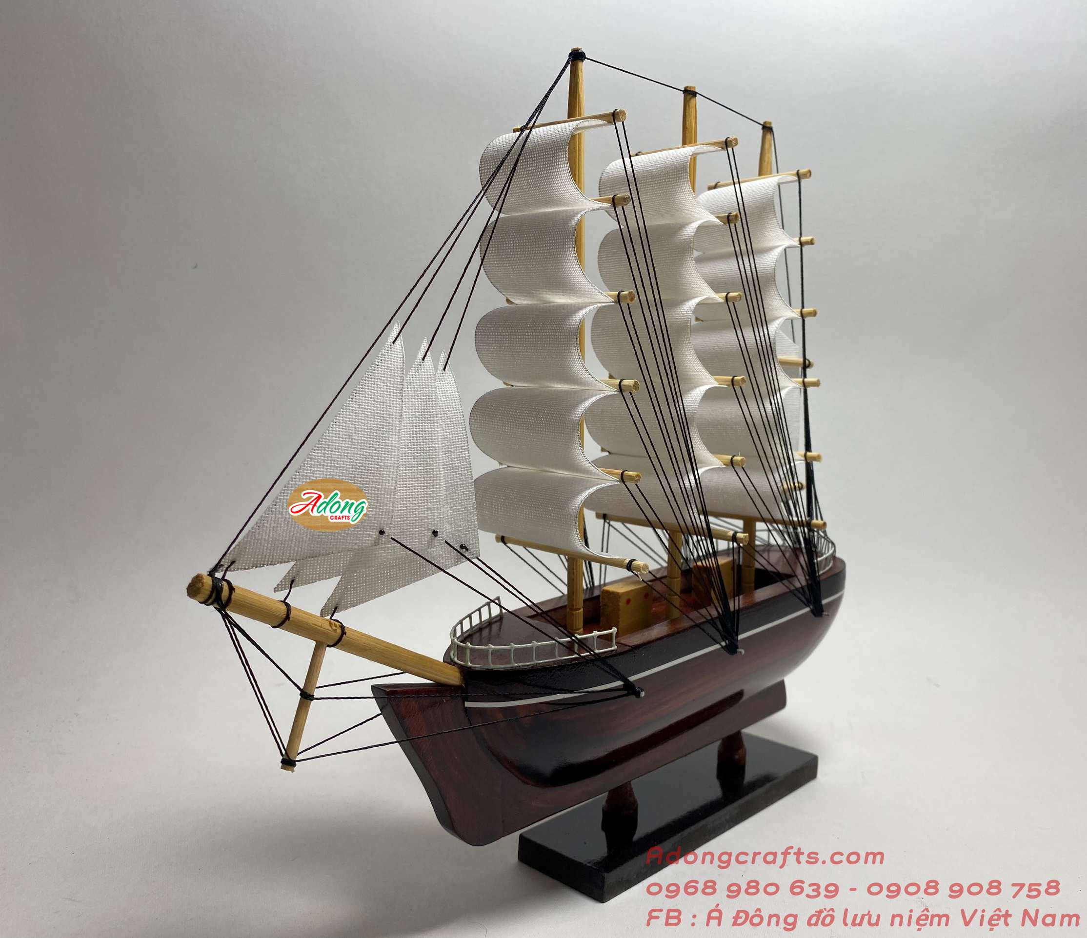 Mô hình thuyền gỗ trang trí “thuận buồm xuôi gió” lưu niệm quà tặng Việt Nam - Kích thước Dài 28 cm cao 25 cm ngang 7 cm - đã nắp ráp sẵn.