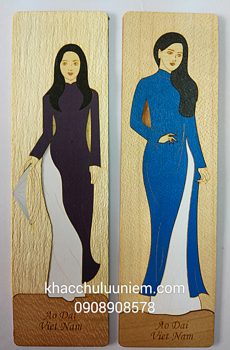 Cài sách gỗ cô gái trang phục truyền thống Việt Nam