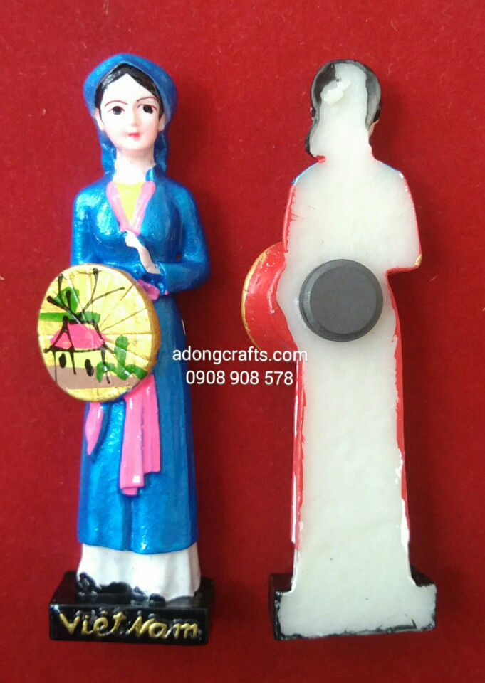 Là sản phẩm tượng có hít nam châm magnet. Sản phẩm mang nét đặc trưng của văn hóa văn hóa vùng miền Việt Nam, Cô gái mang mặc trang phục của 3 miền Bắc Trung Nam Việt Nam.