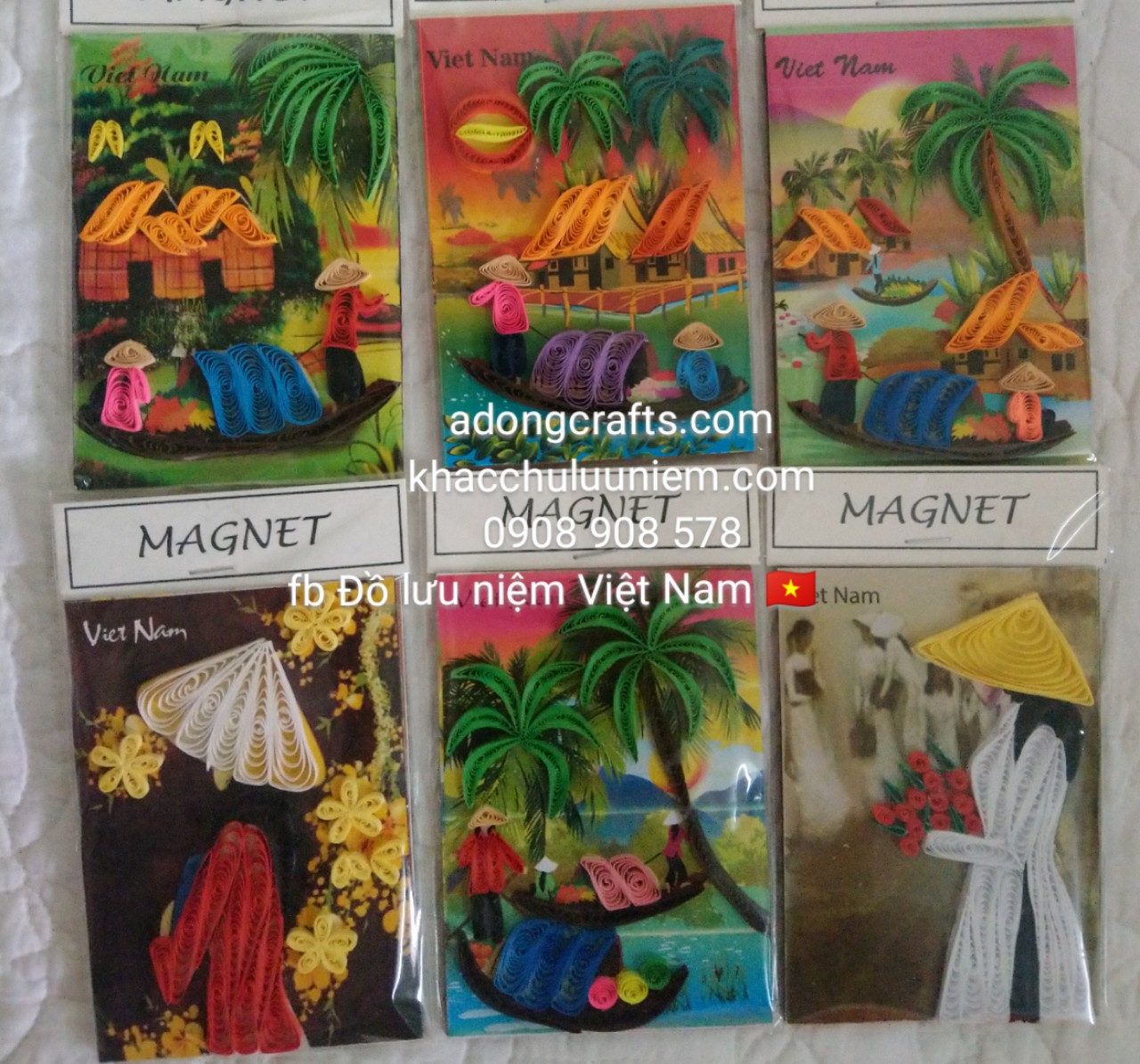Magnet là Hít nam châm tranh giấy cuốn cảnh đồng quê cô gái Việt Nam ( dán dinh tủ lạnh kim loại )