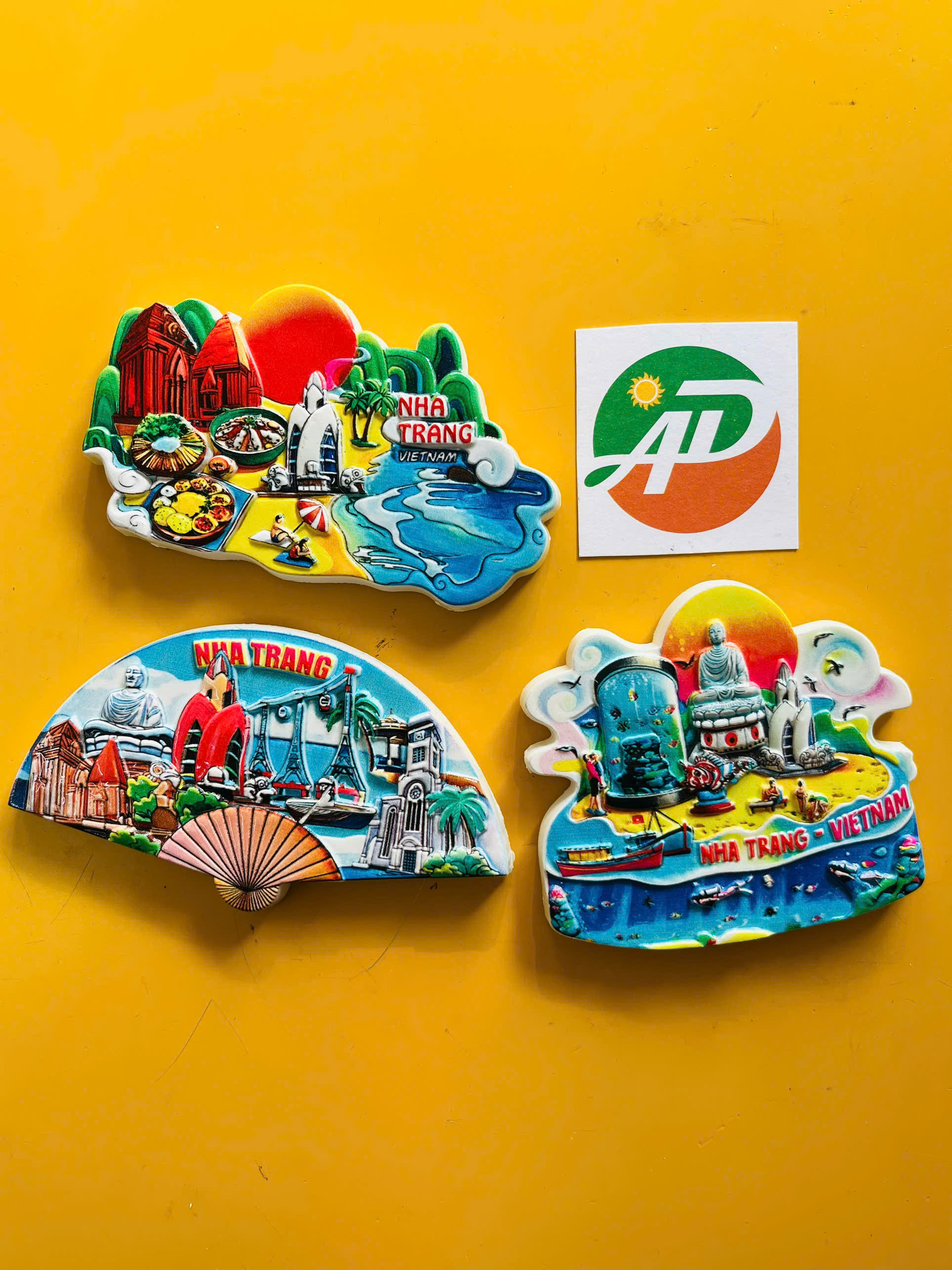 Nha Trang từ lâu đã nổi tiếng với bãi biển tuyệt đẹp, những công trình kiến trúc cổ kính và nền ẩm thực phong phú. Bộ 3 magnet poly dưới đây sẽ giúp bạn lưu giữ và chia sẻ nét quyến rũ của thành phố biển sôi động này.
