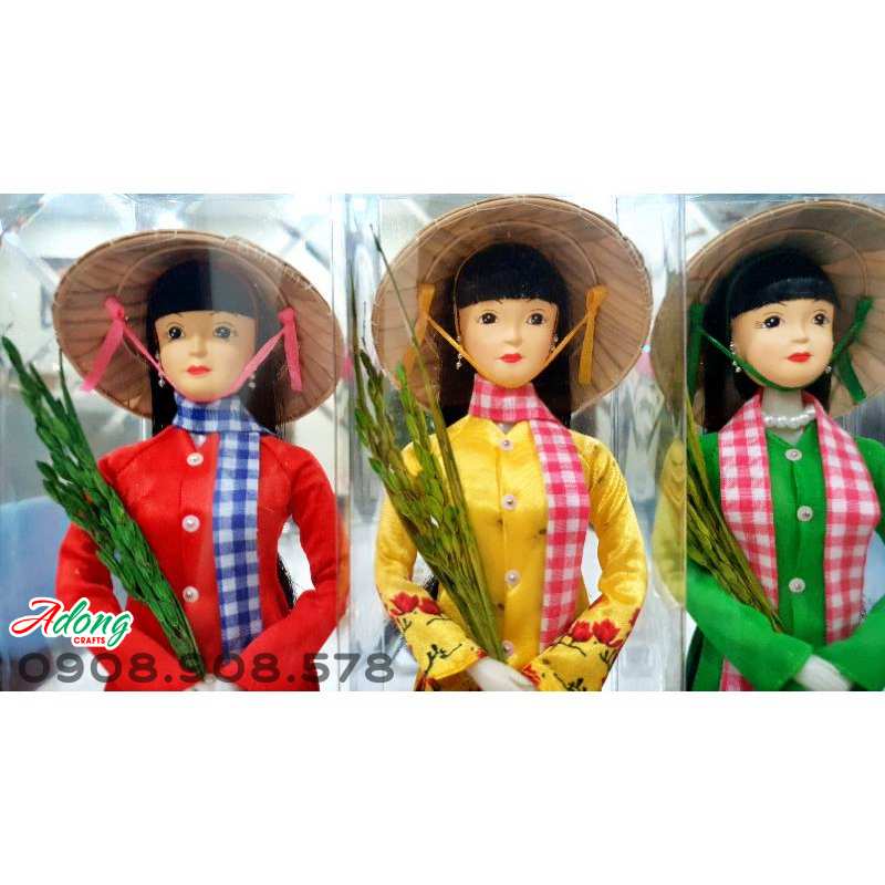 Búp bê cô gái Việt Nam trong bộ áo bà ba ôm bông lúa với những hoa văn đặc sắc và đậm nét nghệ thuật sẽ là một món quà lưu niệm vô cùng độc đáo từ Việt Nam