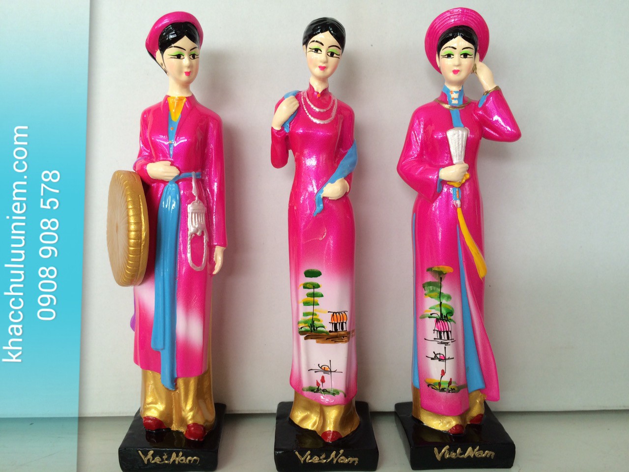 Bộ tượng 3 cô gái Bắc Trung Nam đơn mầu - Quà Tặng Lưu Niệm Việt Nam cao 22 cm