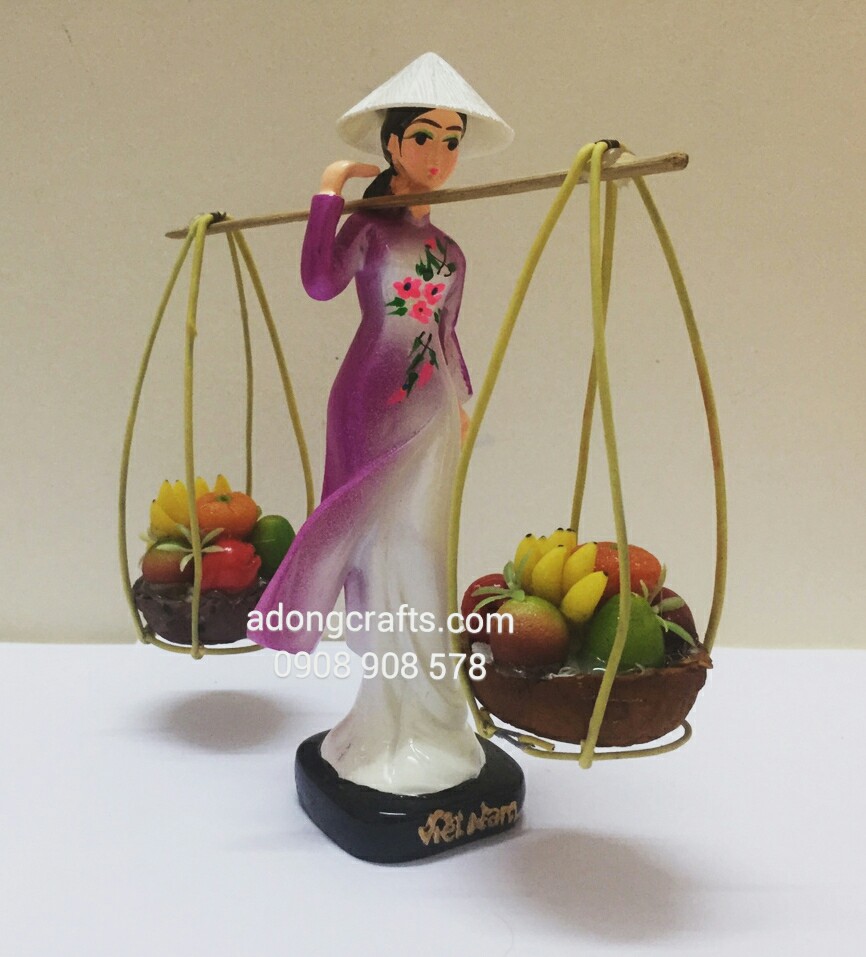 Tượng cô gái đội nón lá gánh trái cây - tượng trang trí lưu niệm