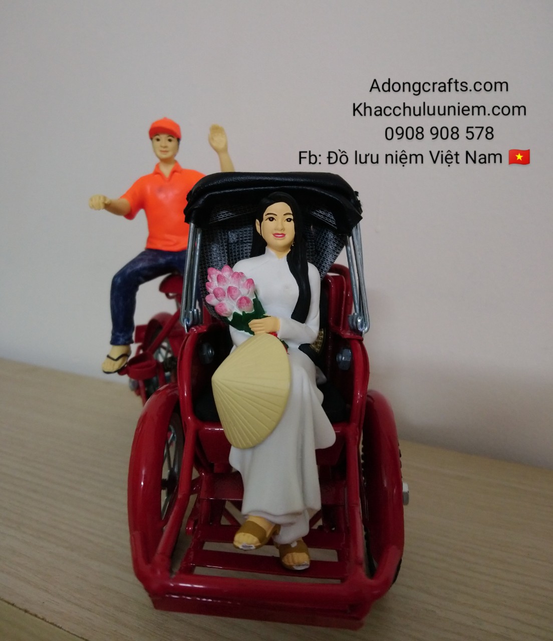 Bộ sản phẩm gồm 3 : Xe xích lô + tượng cô gái + tượng bác tài xế