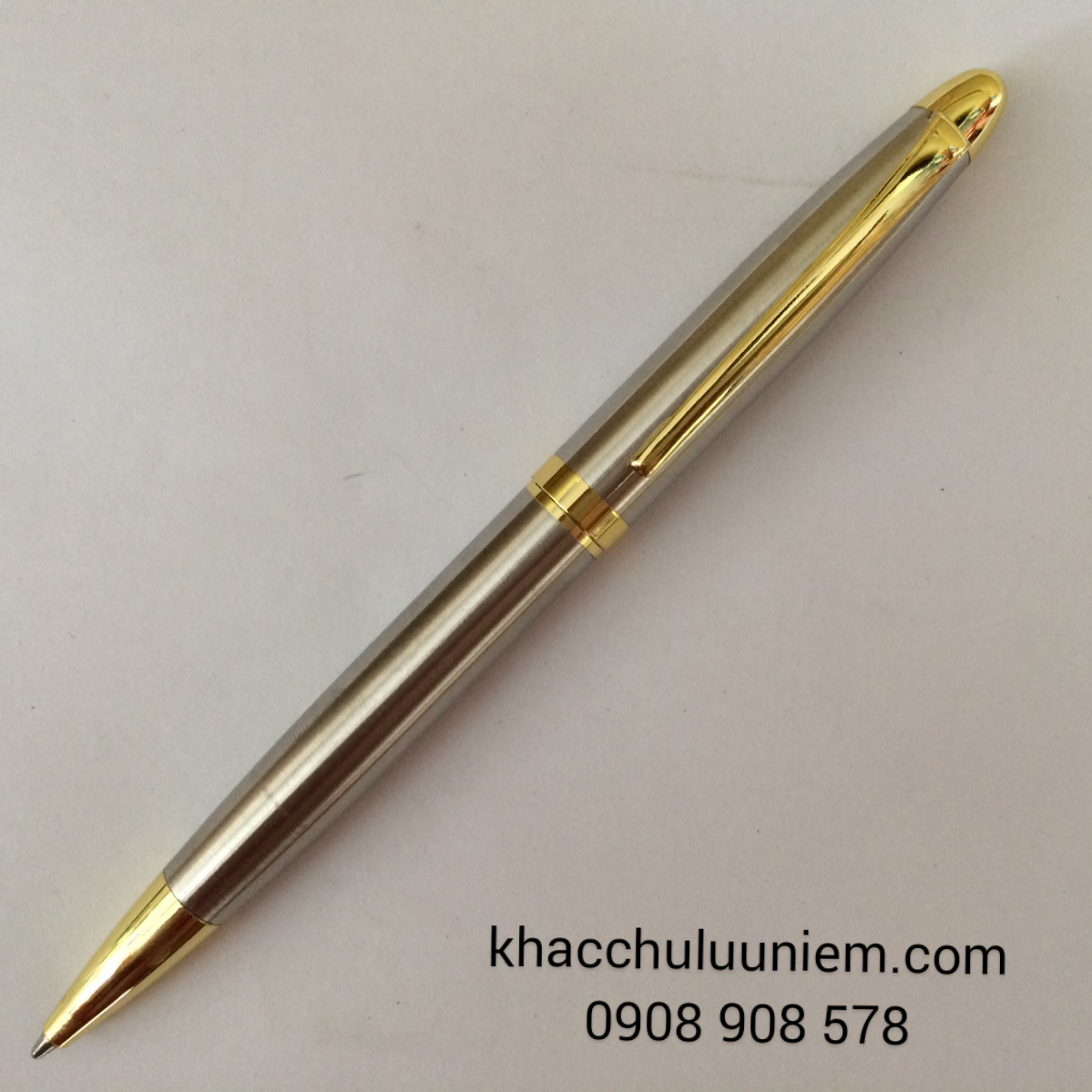 - Bút Ký - Bút Kim Loại có màu trắng bạc , màu sắc bền chắc độc đáo kết hợp với khoen và cài bút được màu vàng ánh kim bắt mắt.