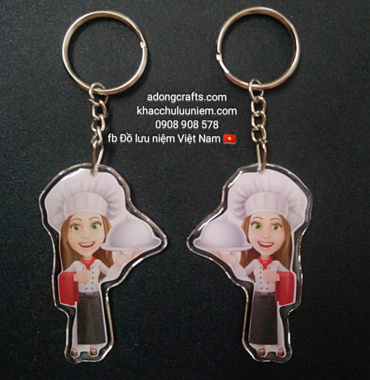 Móc khóa chibi hình đầu bếp được thiết kế bo theo hình . Được đặt với số lượng ít nhiều từ 10 cái đến ngàn cái .