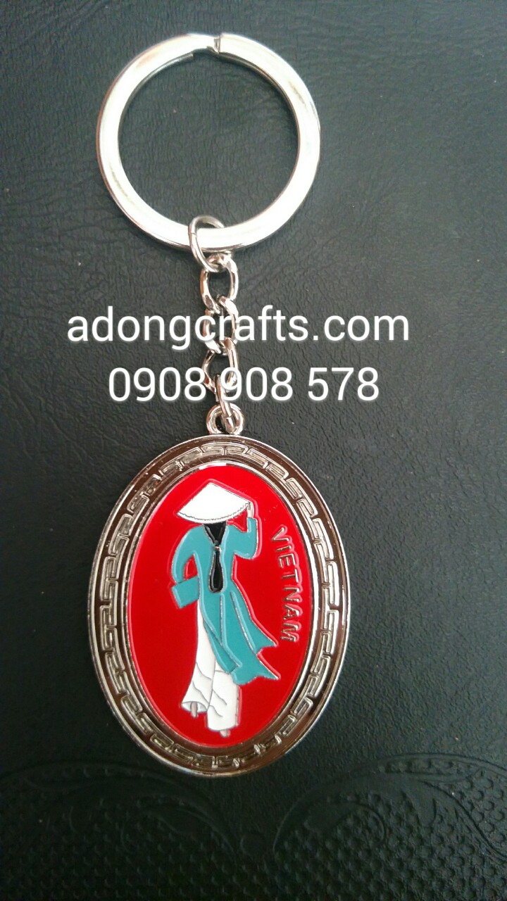 Móc khóa cô gái Việt Nam, được thiết kế dựa trên những sản phẩm đặc trưng của hình ảnh người con gái Việt Nam. Móc khóa được làm bằng chất liệu kim loại, đây là loại móc dầy và tốt, nước sơn in bền và đẹp sang trọng.