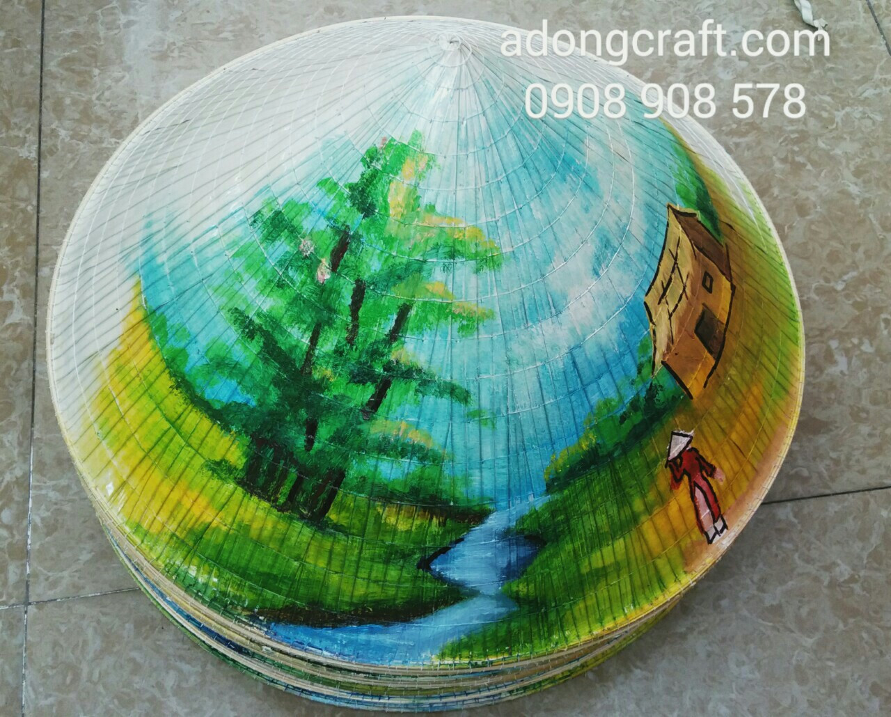 Nón lá vẽ thủ công bằng tay của các nghệ nhân vẽ mỹ thuật.