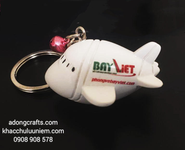 Móc chìa khóa máy bay trắng in logo riêng từng Phòng vé máy bay theo yêu cầu khách hàng.
