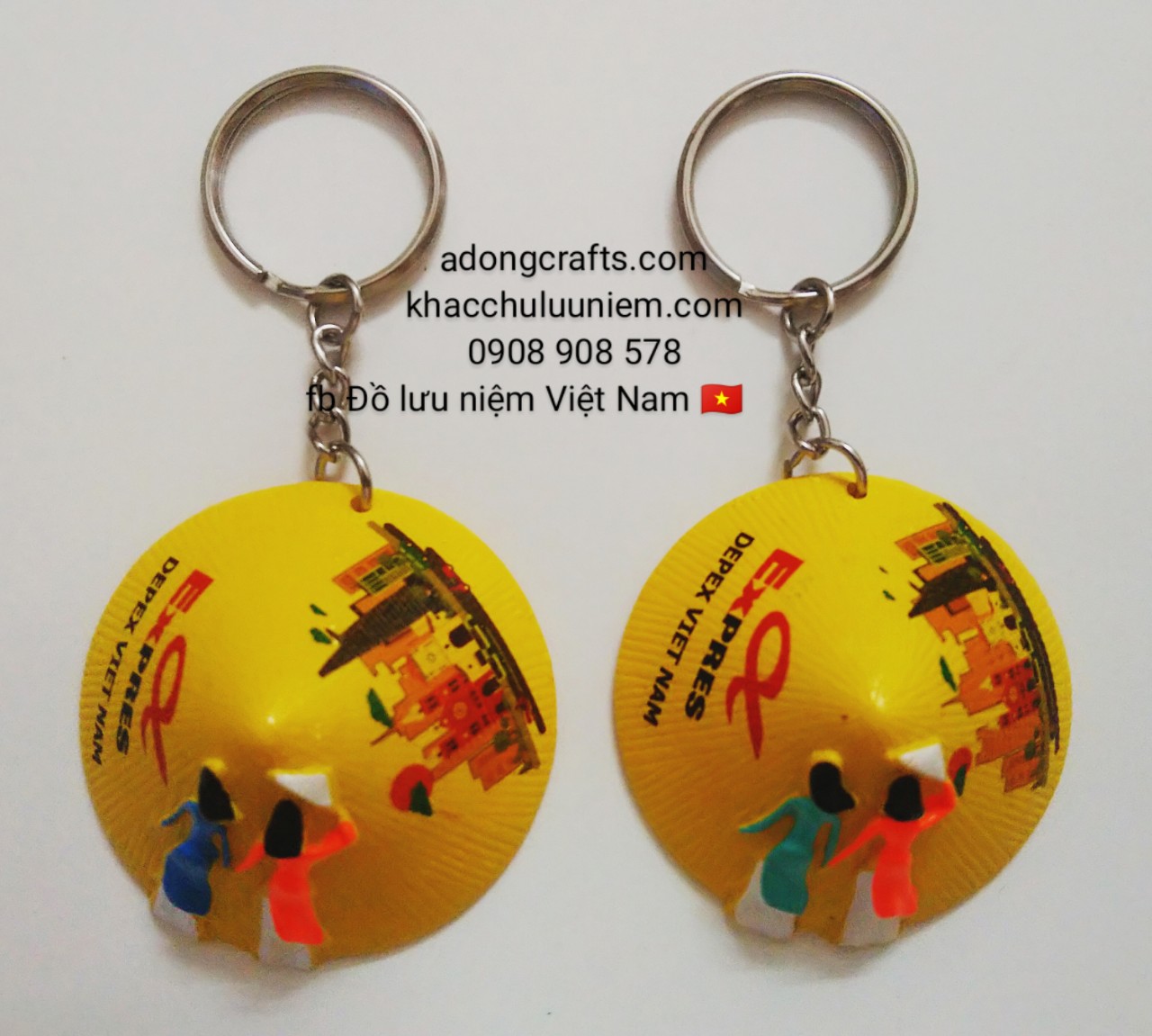 Móc khóa nón lá in hình ảnh với số lượng lớn