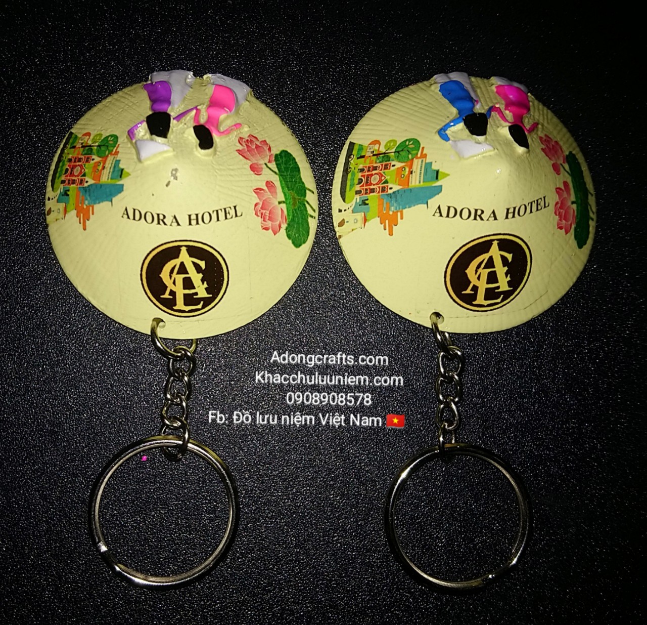 Chúng tôi có thể in logo tên các thương hiệu công ty, công ty du lịch... lên chiếc móc khóa nón lá dành tặng bạn bè, người thân yêu, khách du lịch họ rất yêu thích.