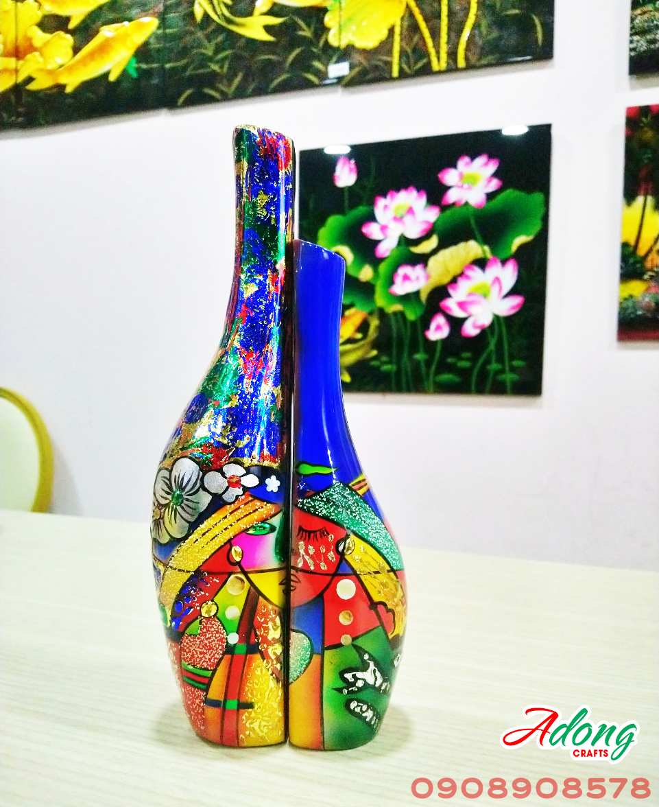 Bình trang trí tròn có quai sách sơn mài nghê thuật - quà tặng lưu niệm mỹ nghệ Việt Nam