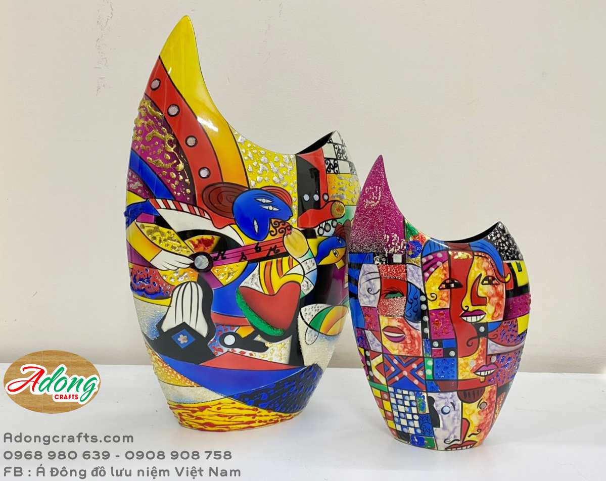 Bình trang trí nghệ thuật - chất liệu sơn mài - lập thể picaso mầu sắc tươi sáng bắt mắt ( 14cm x 24 cm)