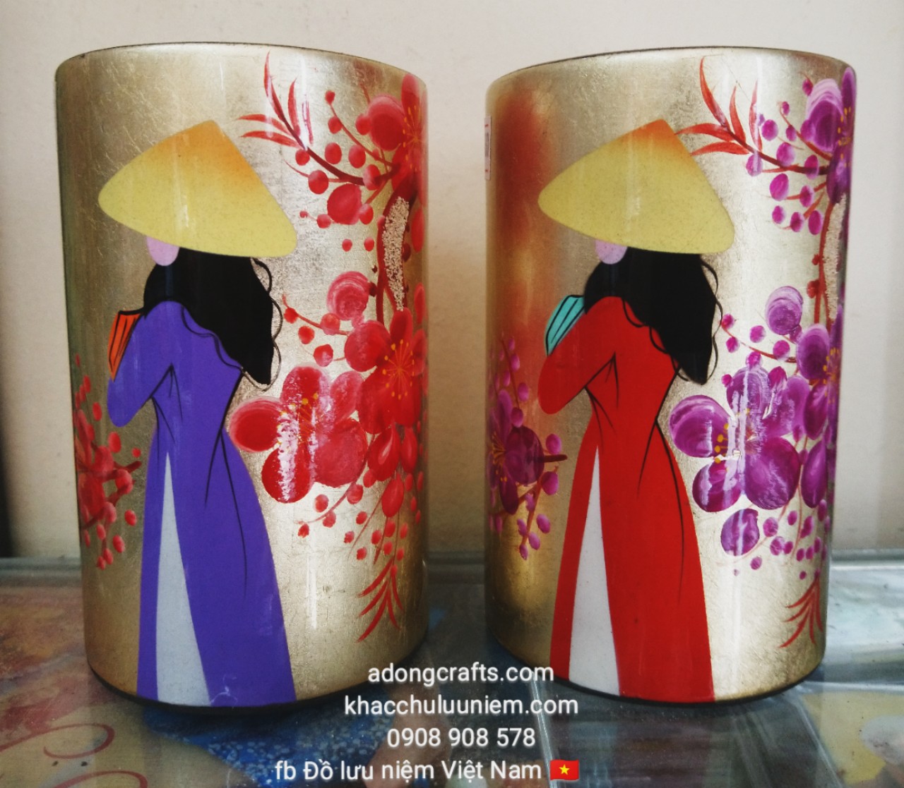 Hũ cắm bút sơn mài hình cô gái Việt Nam