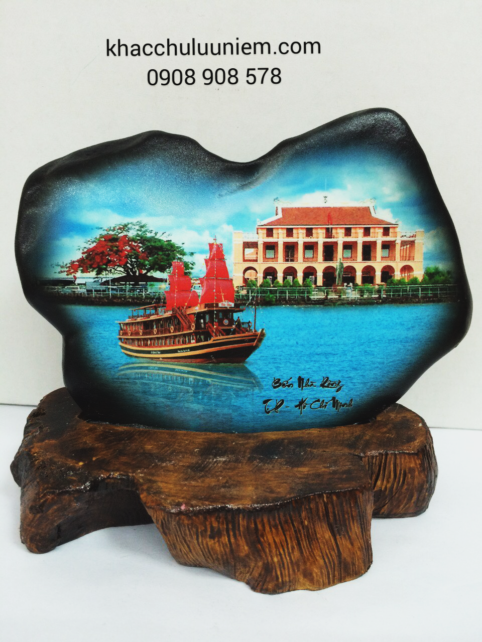 Hình phong cảnh Bến Nhà Rồng - Sài Gòn - Việt Nam trên đá.